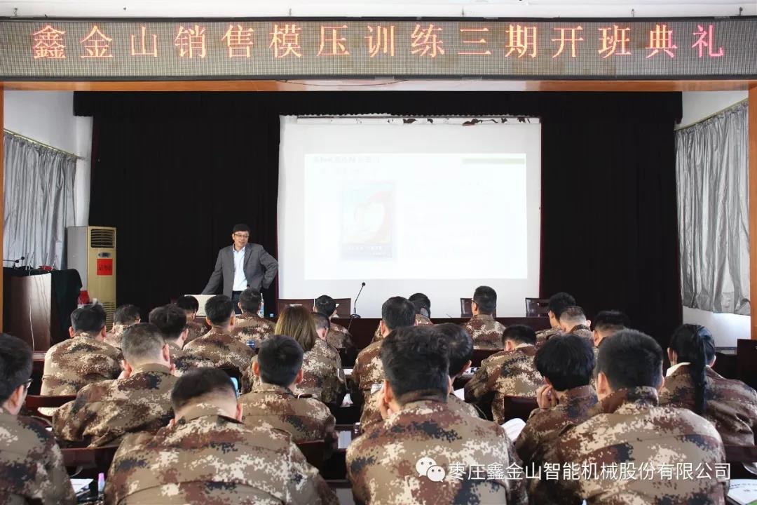 導讀:近日,鑫金山模壓訓練營第三期銷售培訓班正式開課。本期模壓訓練的教練由鑫金山副總經理王總、營銷總監胡總及市場部、銷售部、技術部、生產部、售前部、人資部各領導擔任。為提升新學員綜合素質、服務能力以及服務水平,快速適應市場銷售需要,進行了為期十天的封閉式訓練。學員們分別從產品知識、銷售管理、商務禮儀、職業素養、銷售技巧、市場信息收集與分析、生產線配型等七大版塊進行各項課程系統學習。