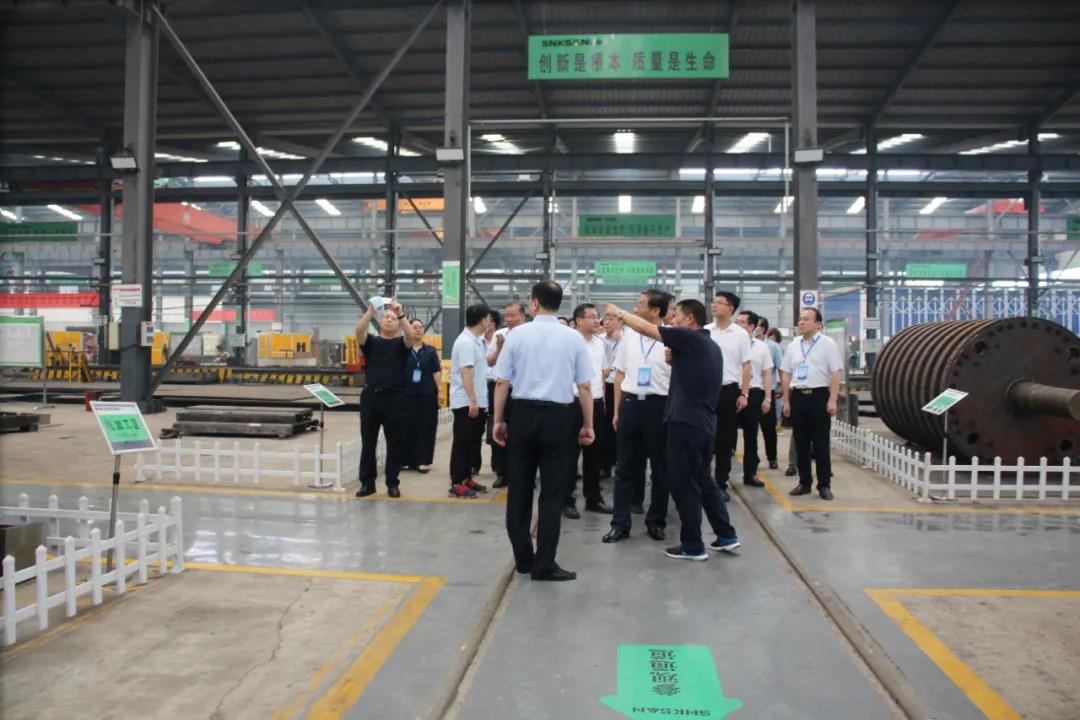隨后,觀摩團一行來到鑫金山新廠區,深入了解現階段企業生產和經營情況,實地考察了鑫金山智能化一體生產車間,對鑫金山智能化車間建設、高效節能的礦山裝備制造等情況給予了高度評價。