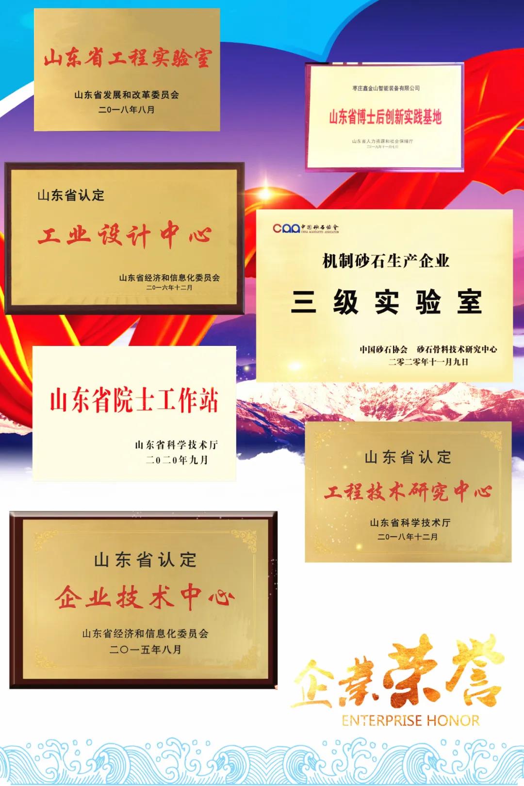 棗莊鑫金山智能裝備有限公司自成立十五年來,始終高度重視科技創(chuàng)新工作,堅持深耕細作,做專做精做強,努力打造自己的科研平臺,先后被評為國家高新技術(shù)企業(yè)、國家級專精特新企業(yè)、省級優(yōu)秀企業(yè)、省瞪羚標桿企業(yè);公司研發(fā)中心被評為國內(nèi)砂石行業(yè)三級(最高等級)實驗室、省級企業(yè)技術(shù)研究中心、省級工業(yè)設(shè)計中心、省級工程實驗室、省級工程技術(shù)研究中心。這些平臺的打造,為企業(yè)科技創(chuàng)新工作打下了堅實的基礎(chǔ),也促進了我國裝備產(chǎn)業(yè)結(jié)構(gòu)調(diào)整和傳統(tǒng)產(chǎn)業(yè)轉(zhuǎn)型升級的發(fā)展。
